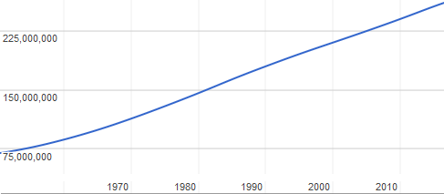 Badan Pusat Statistik (BPS), the government's statistics agency only conducts thorough studies on the Indonesian population size once every decade. According to the latest study (2010) Indonesia had a total population of 237.6 million people. However, according to recent estimates (from various institutions) Indonesia is estimated to have more than 260 million inhabitants in 2017.